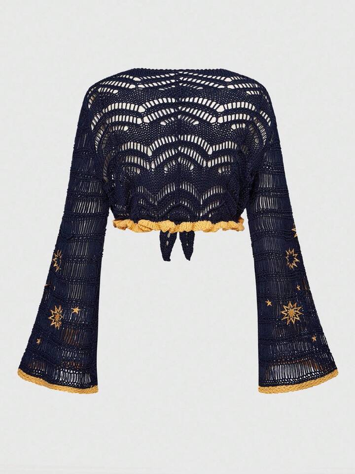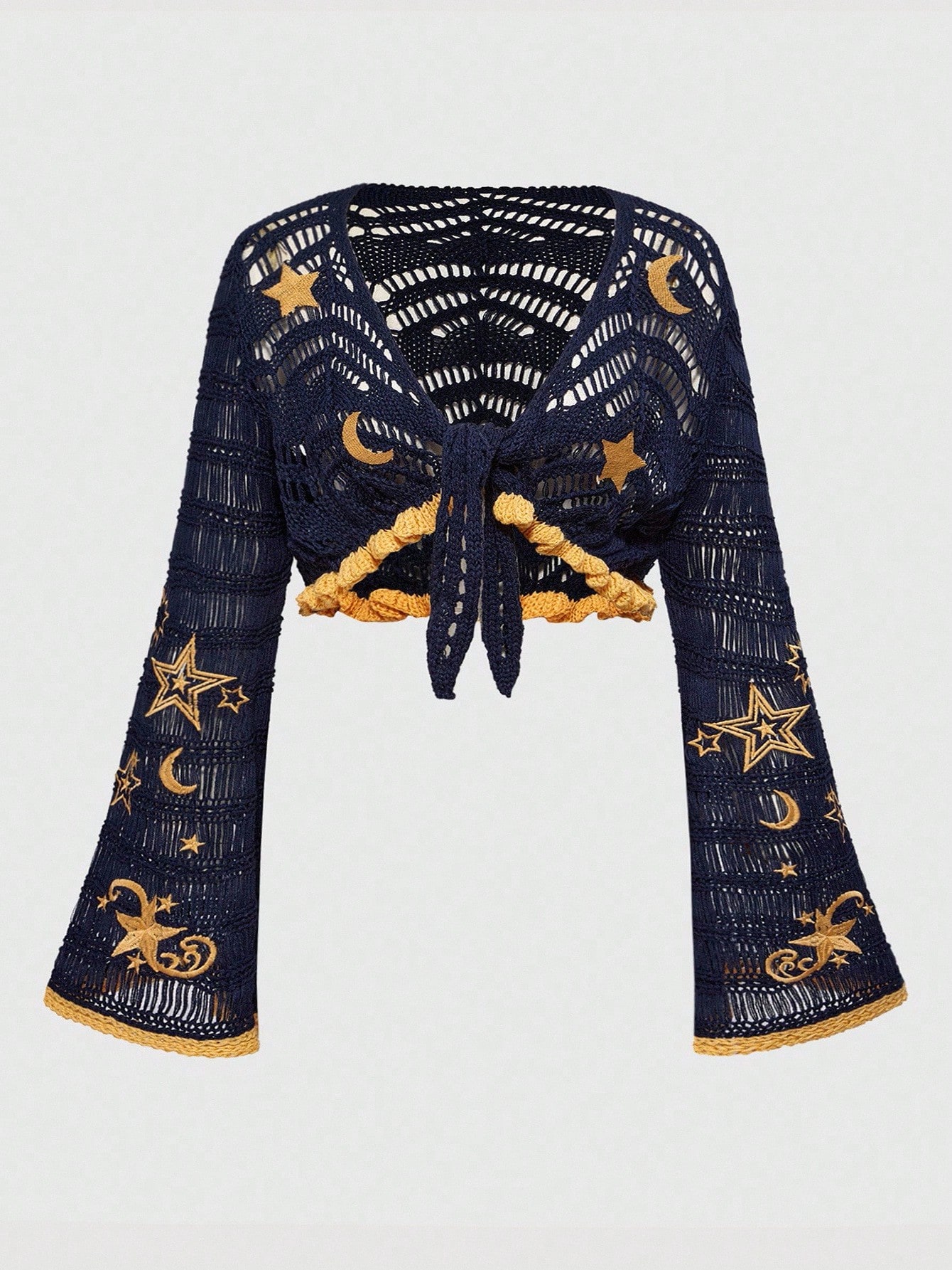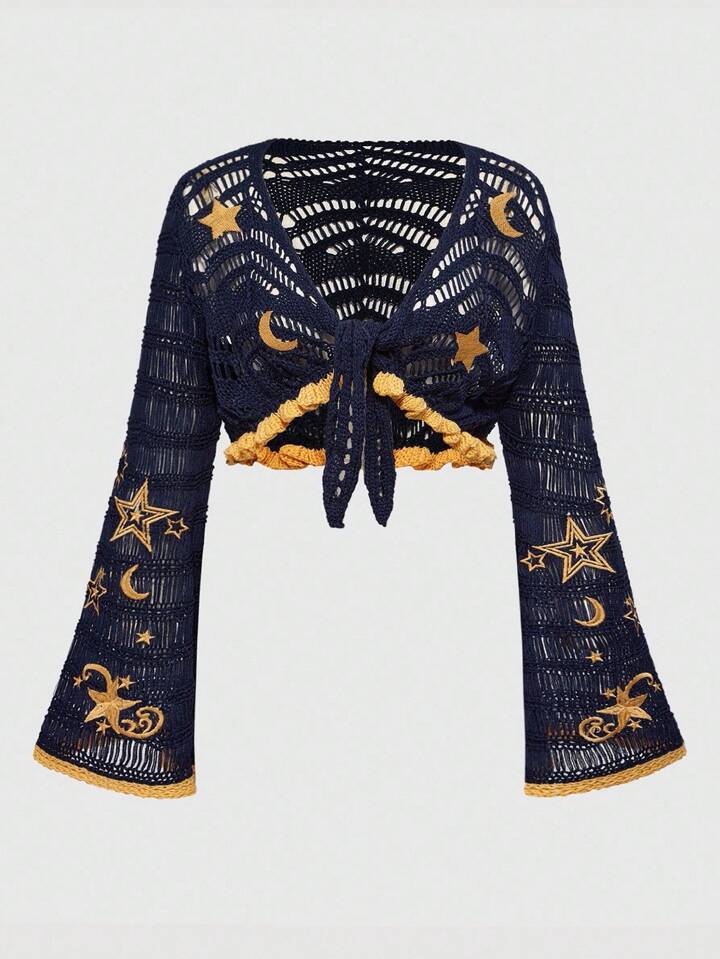 Hippie كارديجان نسائي بأكمام واسعة مطرز بالقمر والنجوم بطراز هيبي بوهيمي لعيد الهالوين