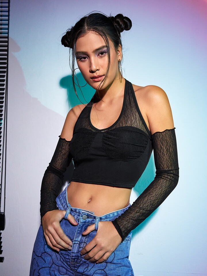 لباس علوي رسن عنق مكشوف الظهر شبكة