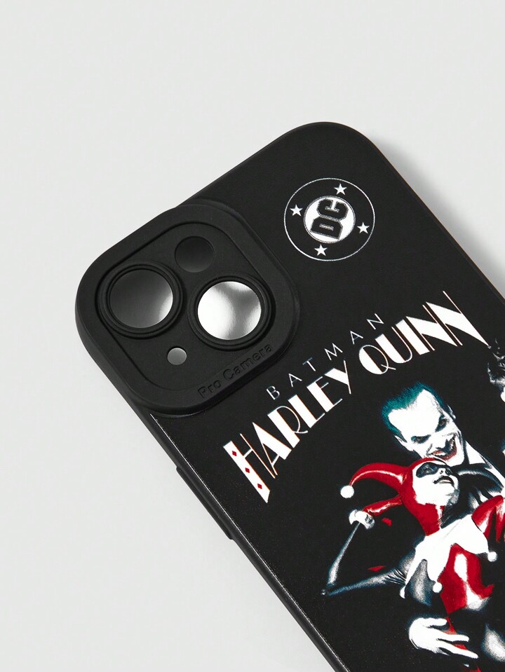 Harley Quinn | ROMWE غطاء هاتف أسود مطبوع بشخصية الجوكر وحرف