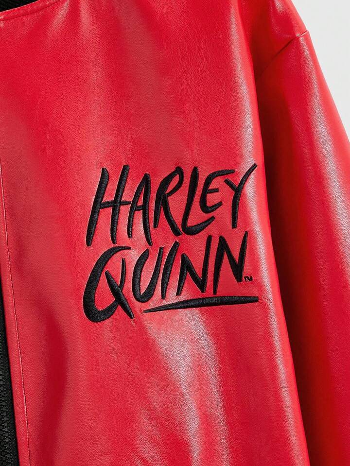 Harley Quinn | ROMWE جاكيت البيسبول جلدية PU بطباعة حرفية لون التصميم العشوائي للنساء