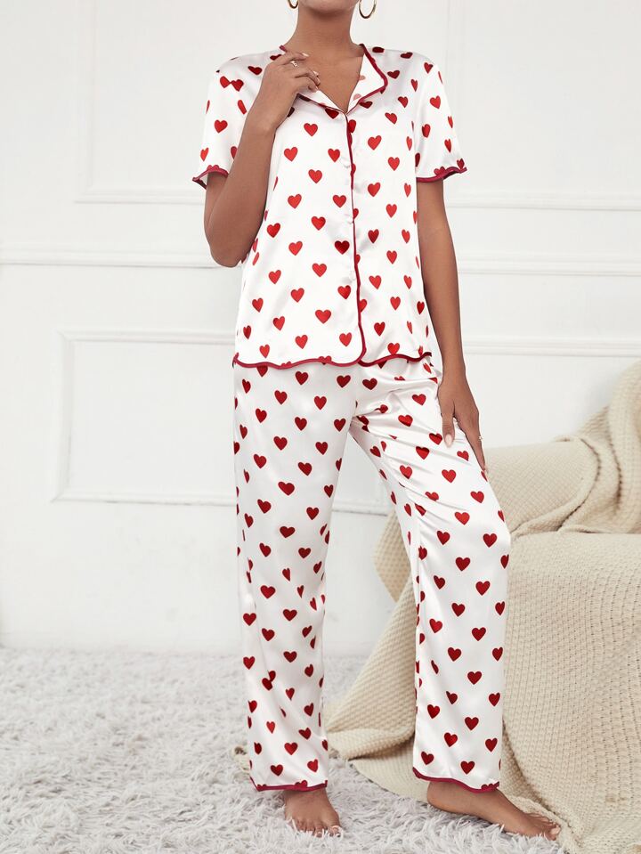 طقم بيجاما من القطيفة بتصميم قلب وحواف متباينة