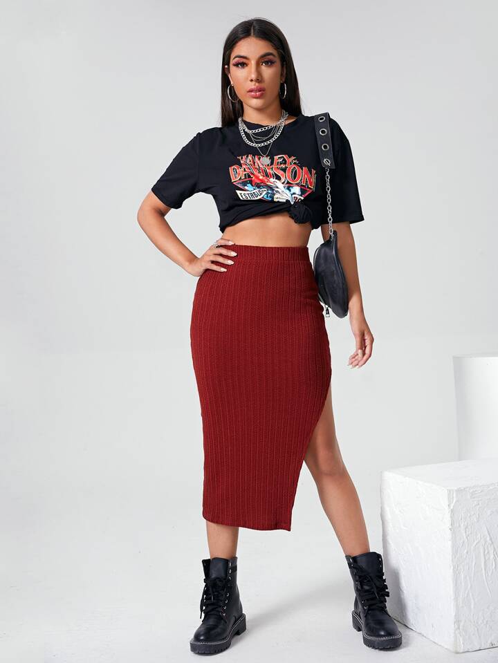 تنورة بفتحة جانبي عالي