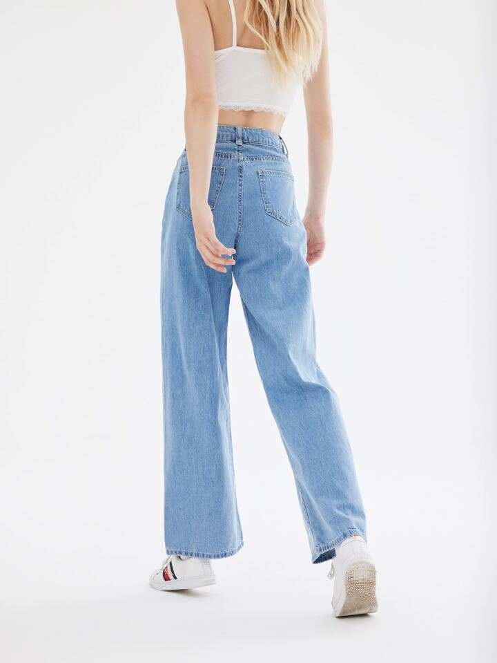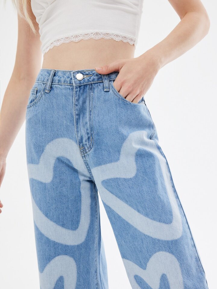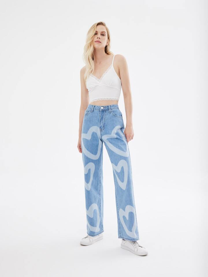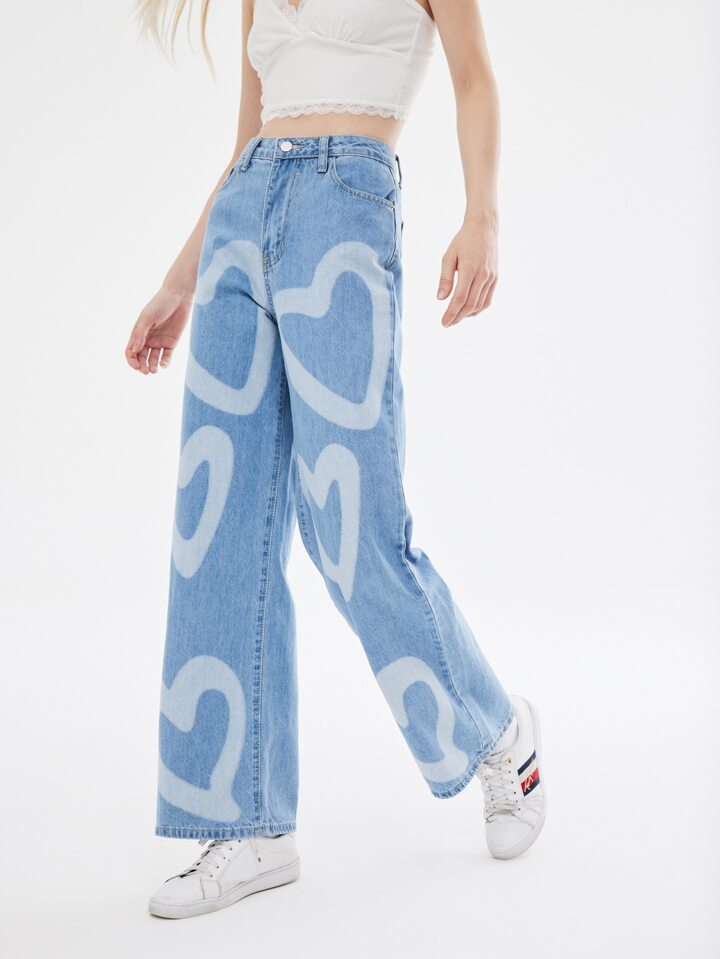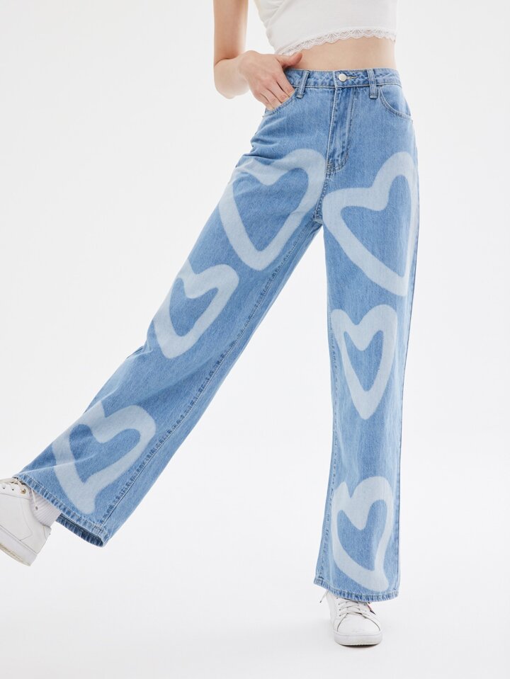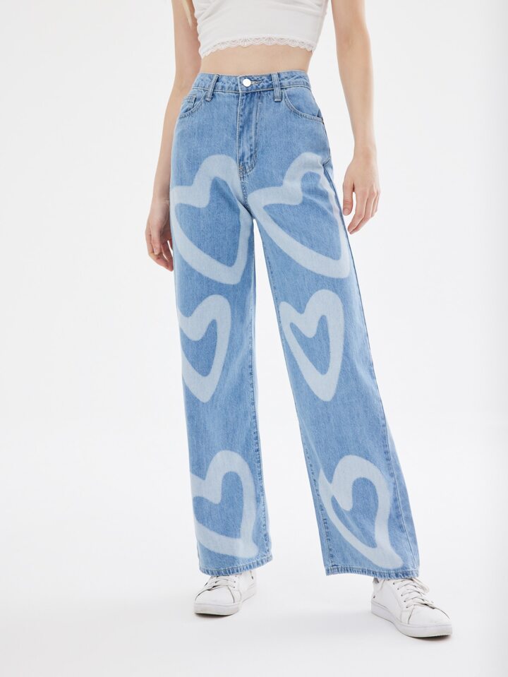 بنطلون جينز بقصة رجل واسعة وخصر عالي بطباعة قلوب