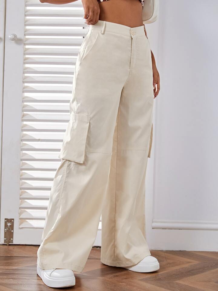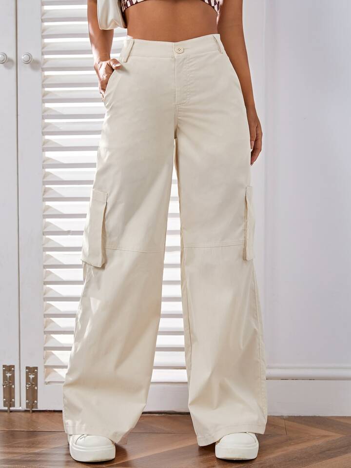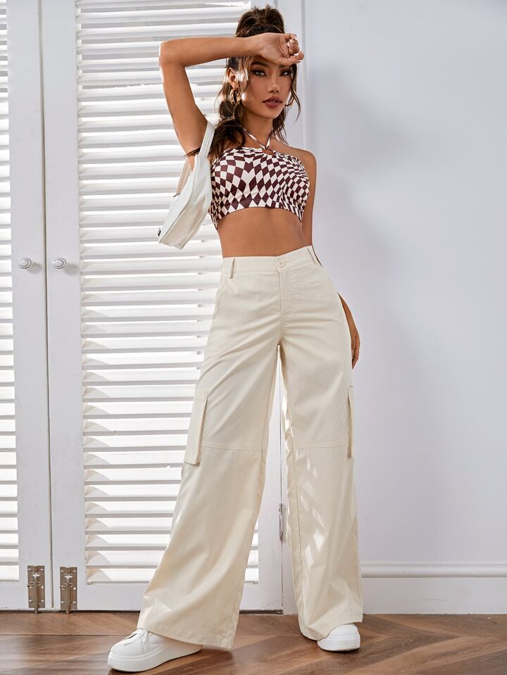 بنطلون بساق واسع خصر عالي مرقع جيب