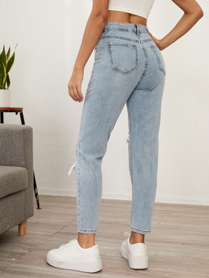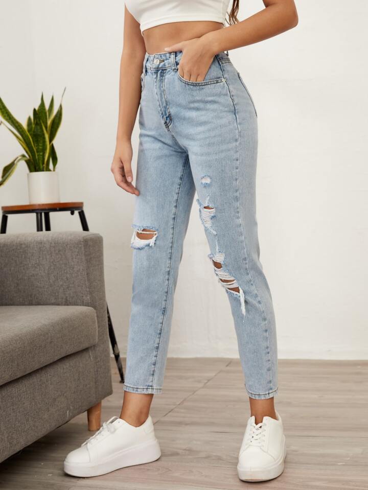بنطلون جينز ممزق بخصر عالي