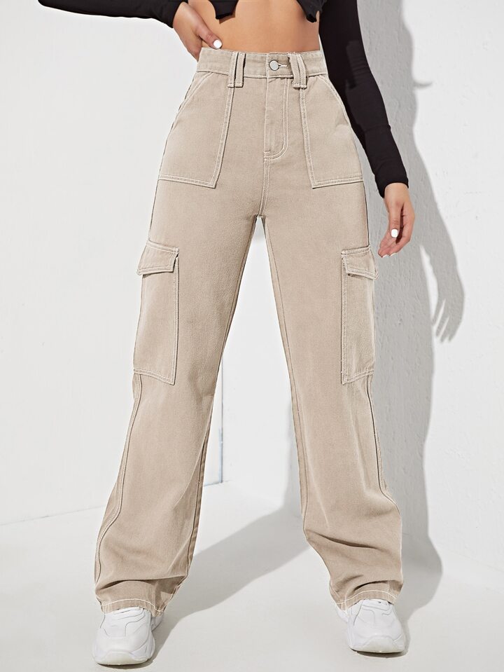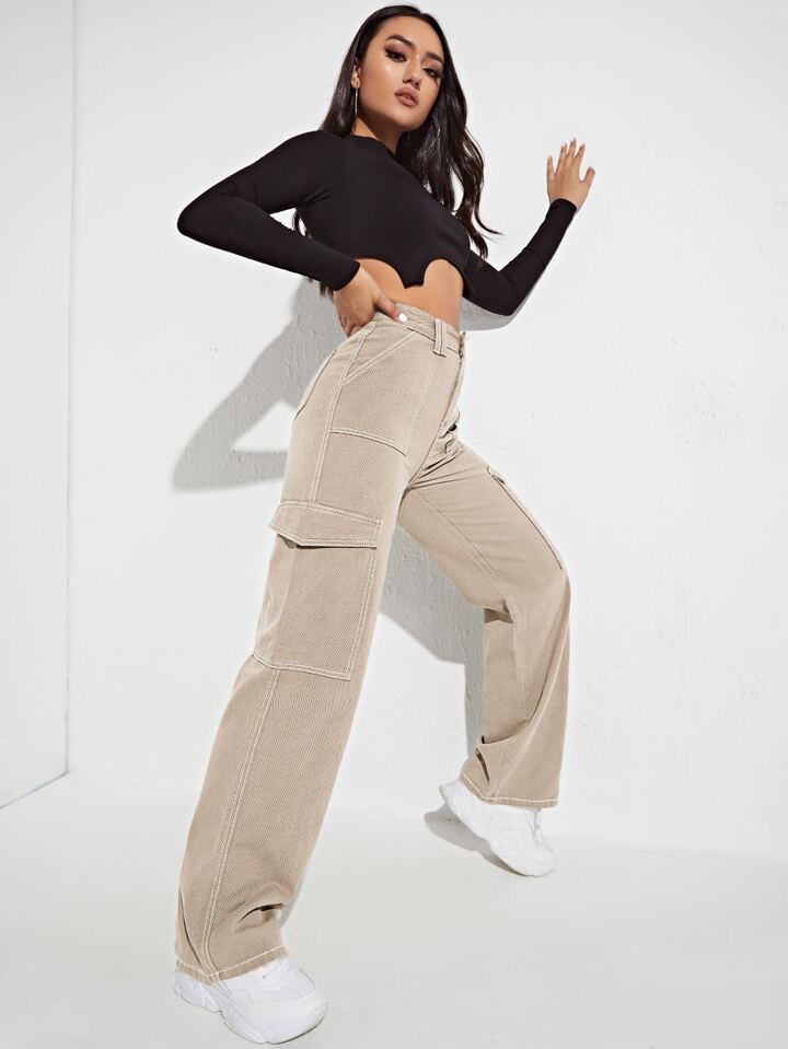 بنطلون جينز بجيب جانبي بخصر عالي
