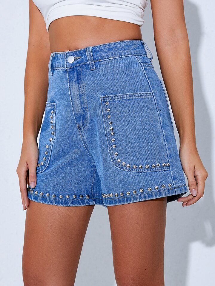 شورت دنيم مرصع بخصر عالي