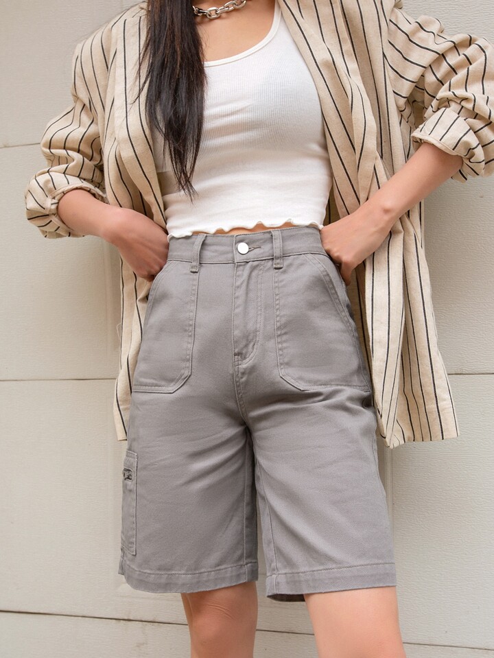 شورت برمودا خصر عالي جيب بسستة جانبي