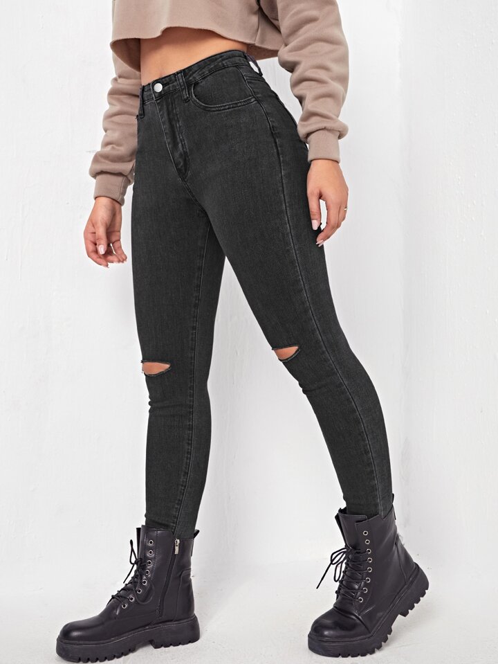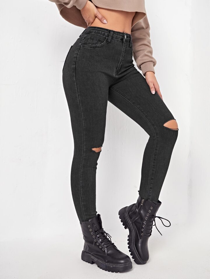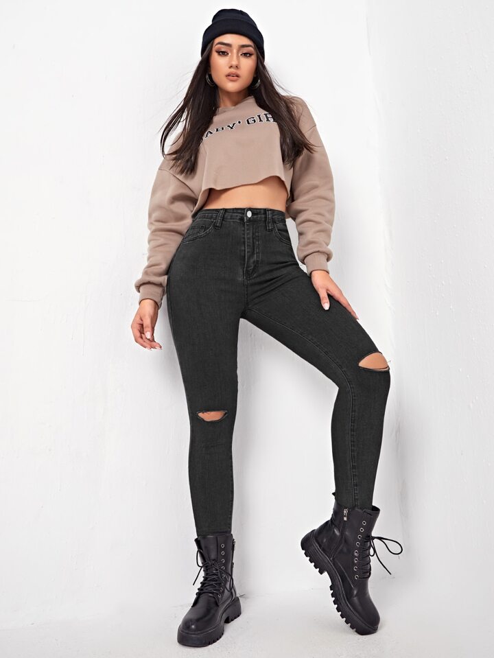 جينز نحيل ممزق خصر عالي