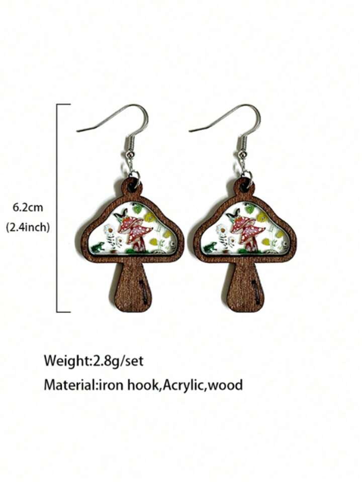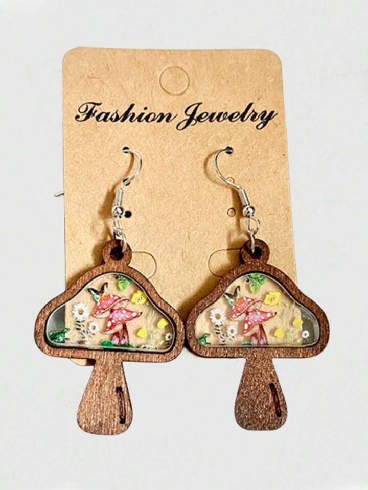 Hippie زوج من أقراط الخشب القديمة مع علاقات زهور وفطر، هدايا المجوهرات لحفلات الأعياد والعيد الحب