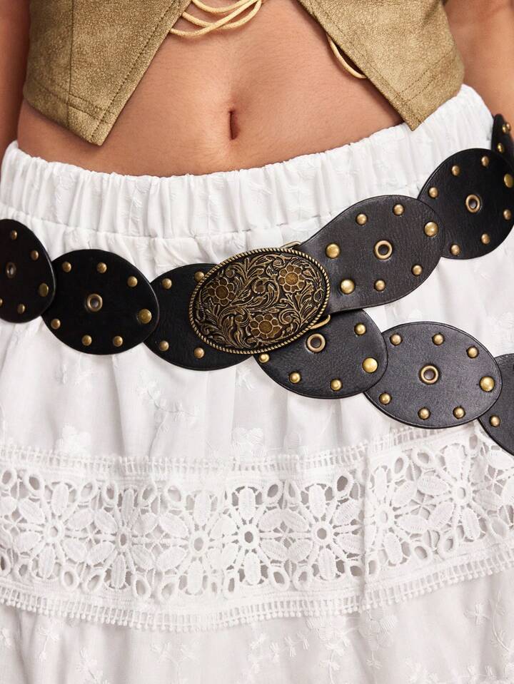 Hippie قطعة واحدة حزام خصر نسائي من الجلد، مزين برونزية والزخارف المثقوبة، بطراز بوهيمي غربي، متعدد الاستخدامات مع الفساتين والجينز والملابس اليومية