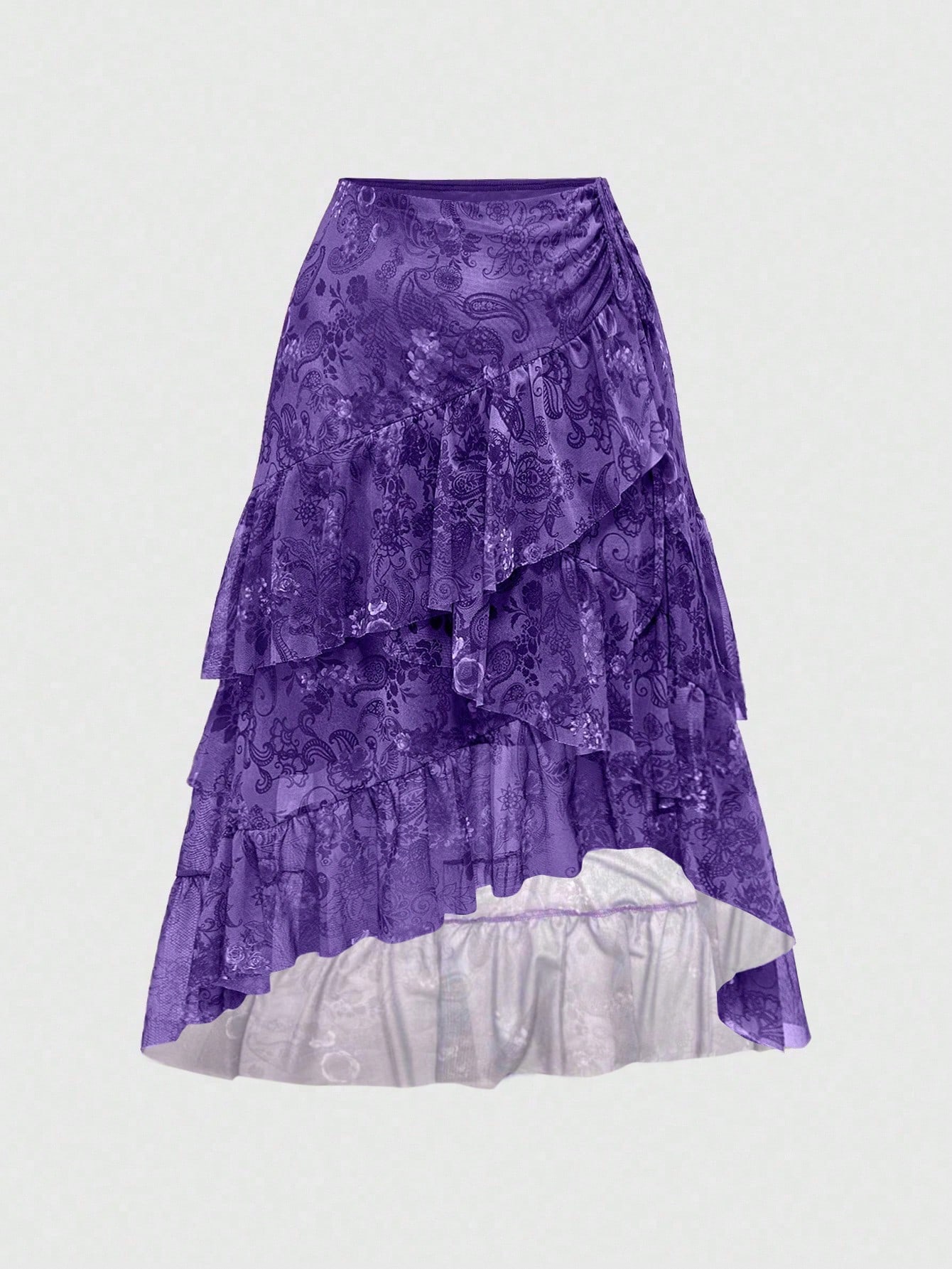 Hippie تنورة نسائية عصرية مطبوعة بطبعة الكاجو، متعددة الطبقات ومزينة بالكشكشة