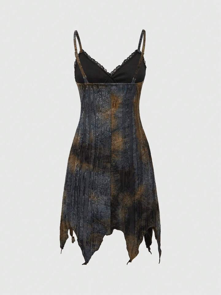 Hippie فستان ميدي بحمالات شورت تاي بطبعة الشبكة بأسلوب القفر للنساء