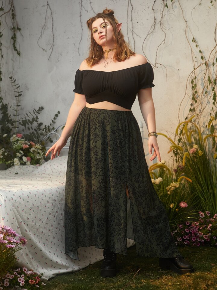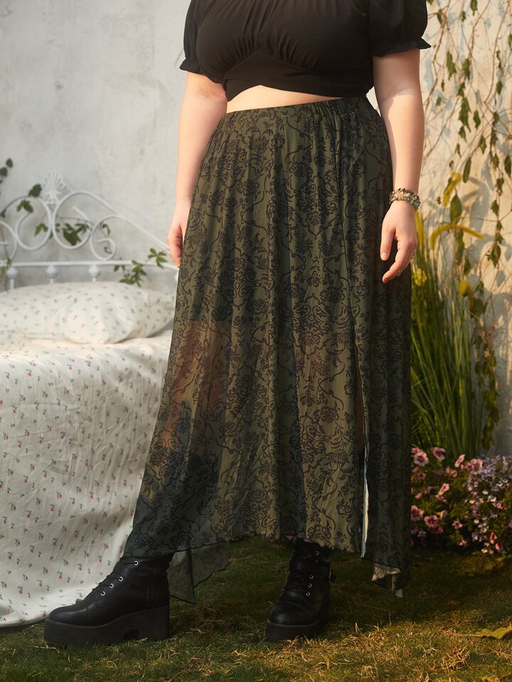 Hippie تنانير مقاسات كبيرة غير متساوي او غير متماثل ممزق شق عالية إلى الفخذ نباتات بطباعة شاملة بوهو
