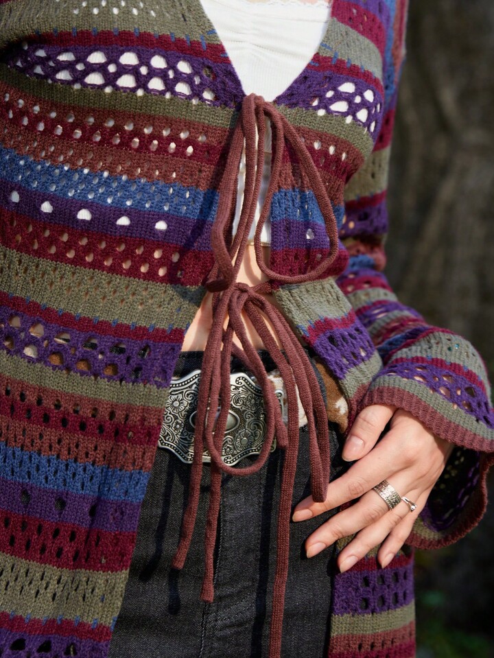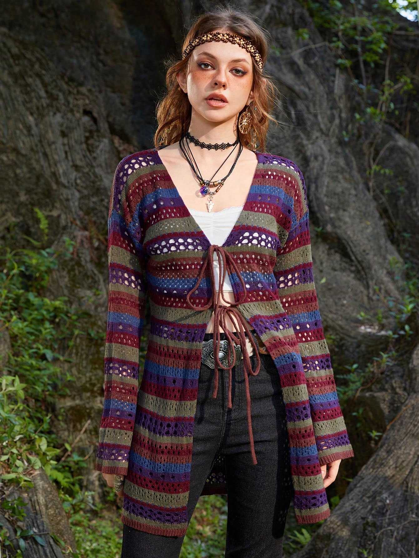 Hippie كارديجان مخطط قص مجوف ربطة امامية