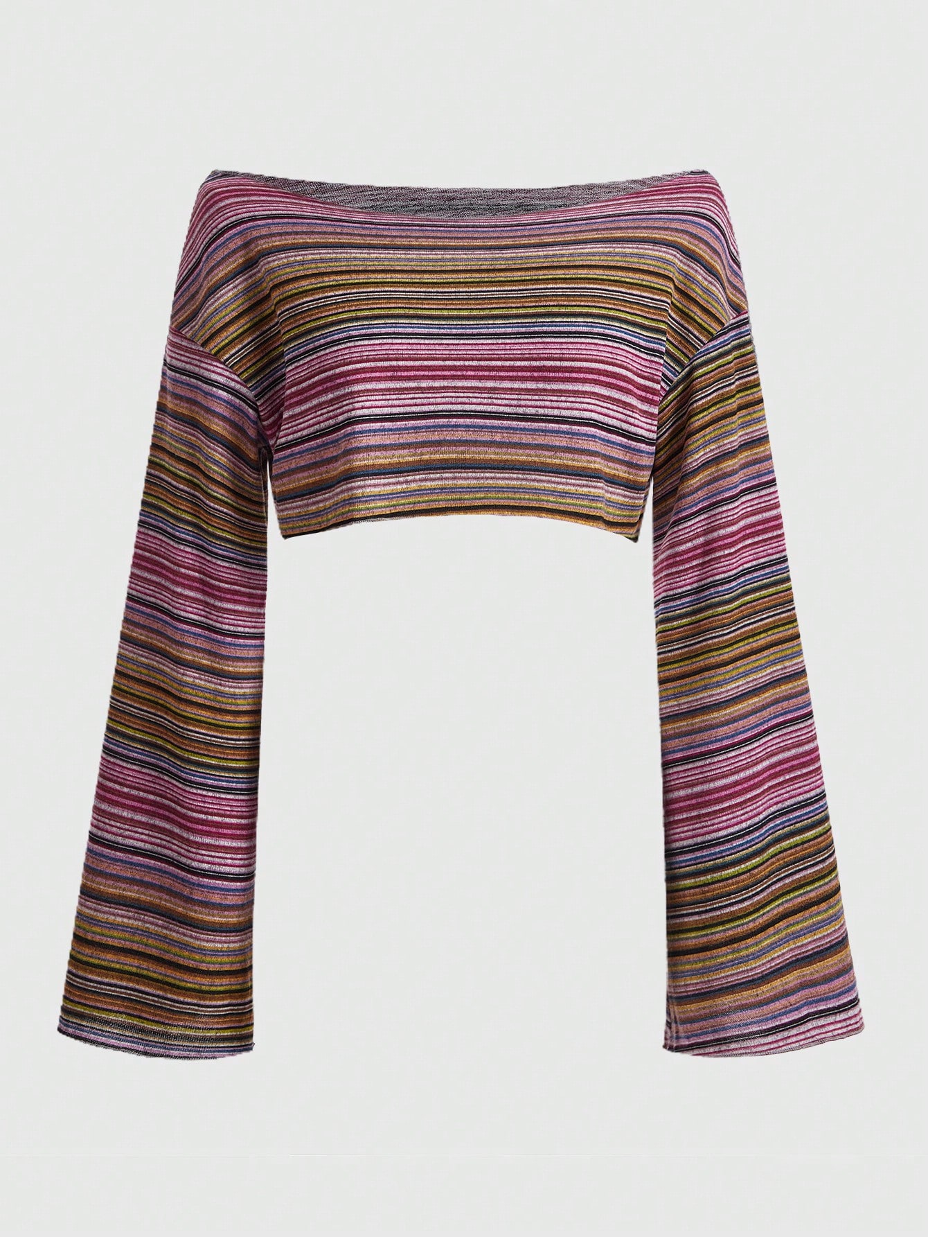 Hippie تي شيرت طباعة مخطط عنق شكل قارب