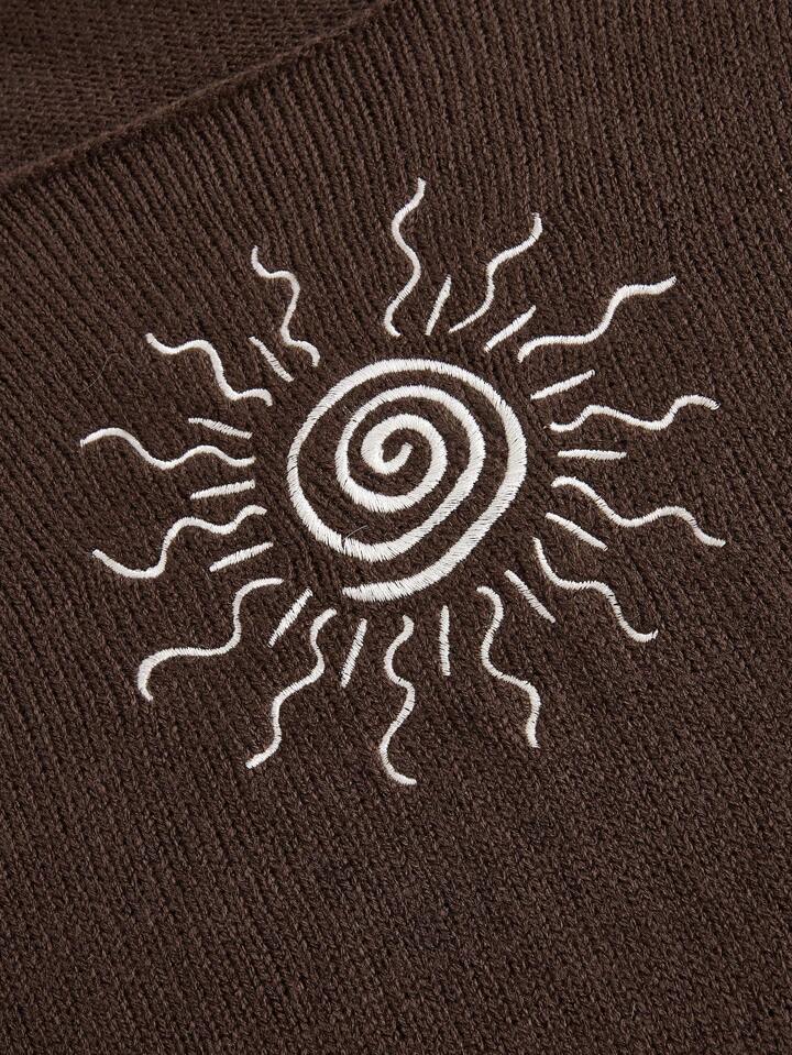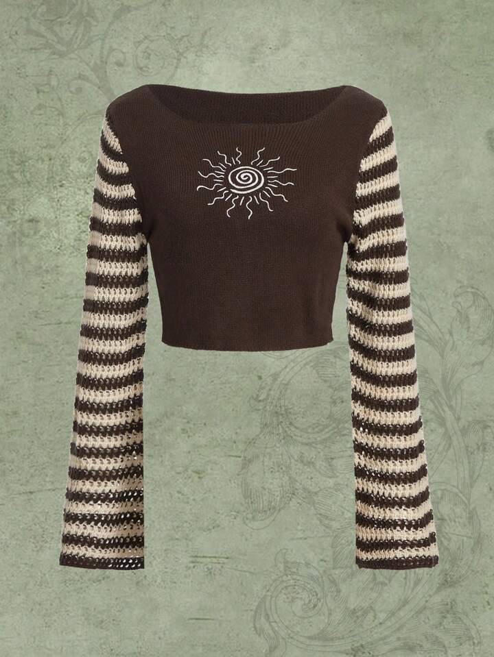 Hippie كنزة صوف قصير مخطط & نمط الشمس أكمام جرس