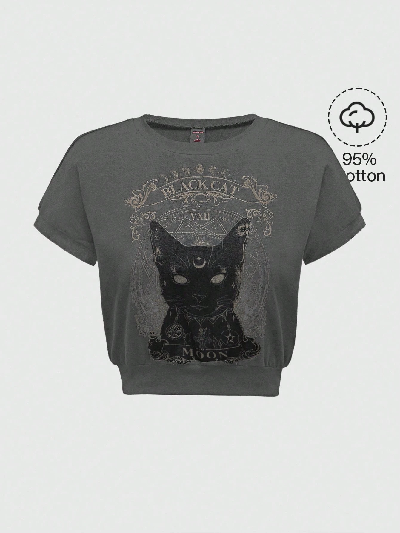 Hippie قميص كاجوال بأكمام قصيرة بياقة مستديرة مطبوع عليه شمس وقمر وأنجم، صيفي