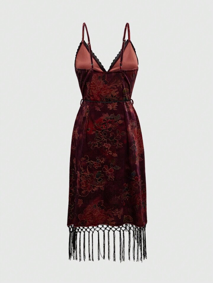 Hippie فستان سليب أنيق متوسط الطول للنساء ، مزين بالورود الفاخرة والدانتيل والشك، بدون أكمام، مناسب لاستقبال العام الجديد