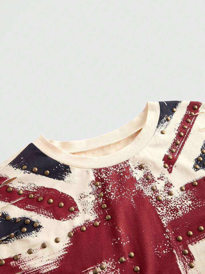 Hippie تي شيرت تي قصير للنساء بتصميم عصري متباين اللون مطبوع مزين بالزوات