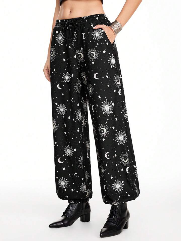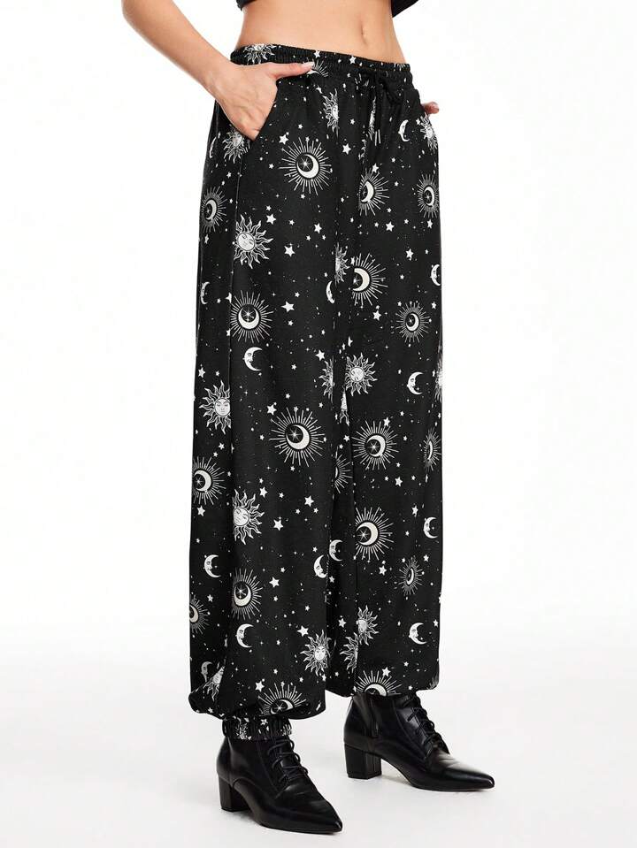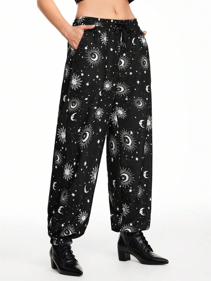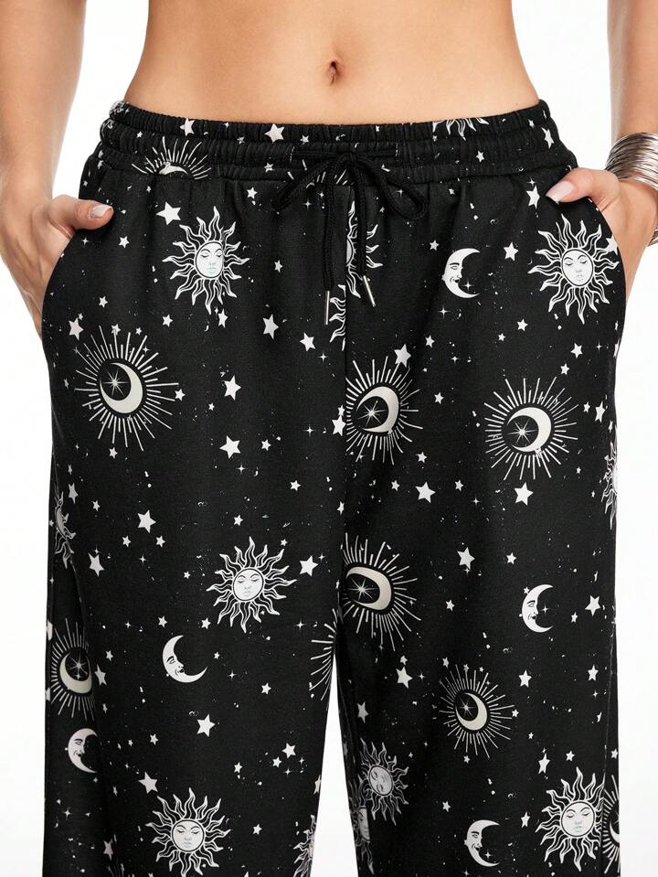 Hippie بناطيل نوم نسائية مطبوعة بنجوم وأقمار لارتداء اليومي العادي