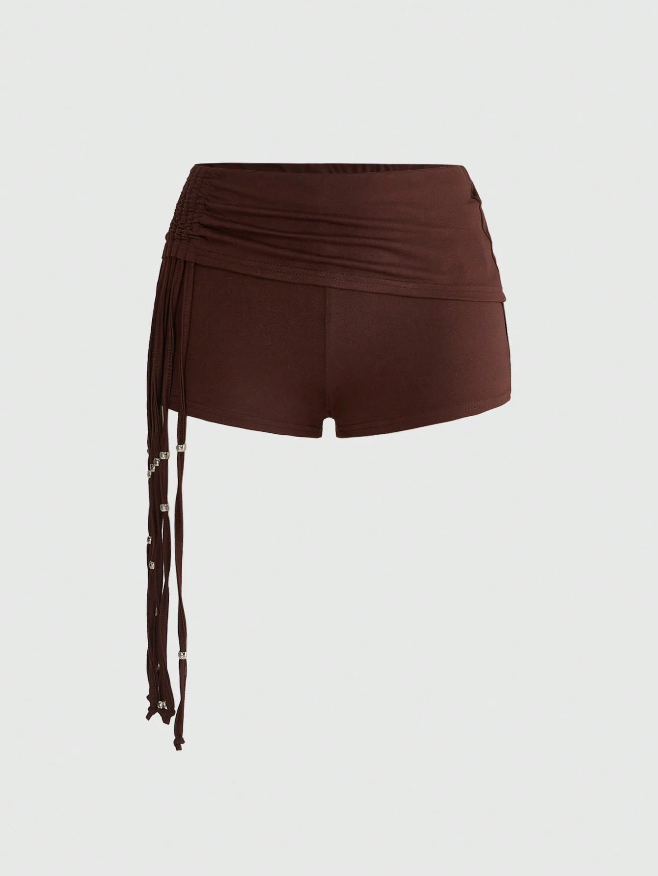 Hippie شورتات نسائية غربية مشوهة الخصر بسحاب، خصر مطوي منخفض، مناسبة للربيع والصيف