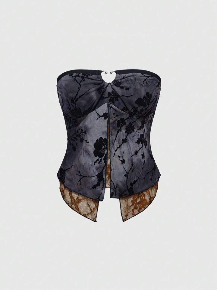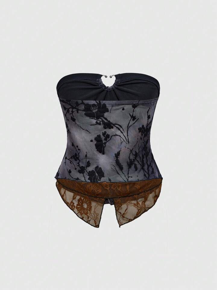 Hippie رداء نسائي Y2K ذو لمسة فرعية مفروكة من اللحف ورقع التترة، قطعة علوية 2 في 1