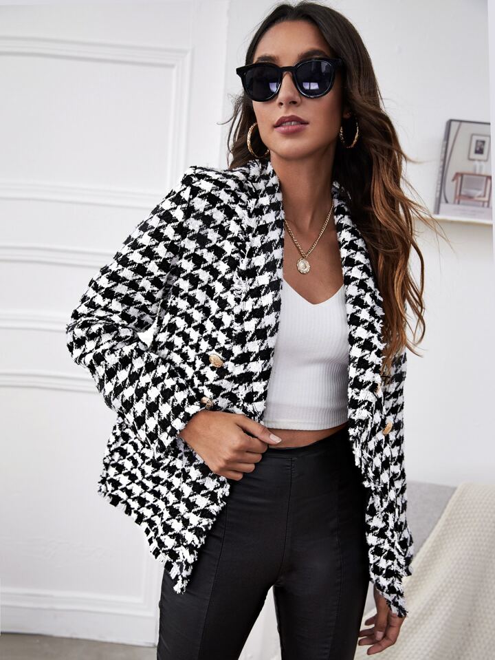 جاكيت مربعات مسنن أزرار مزدوجة تويد ملابس العمل
