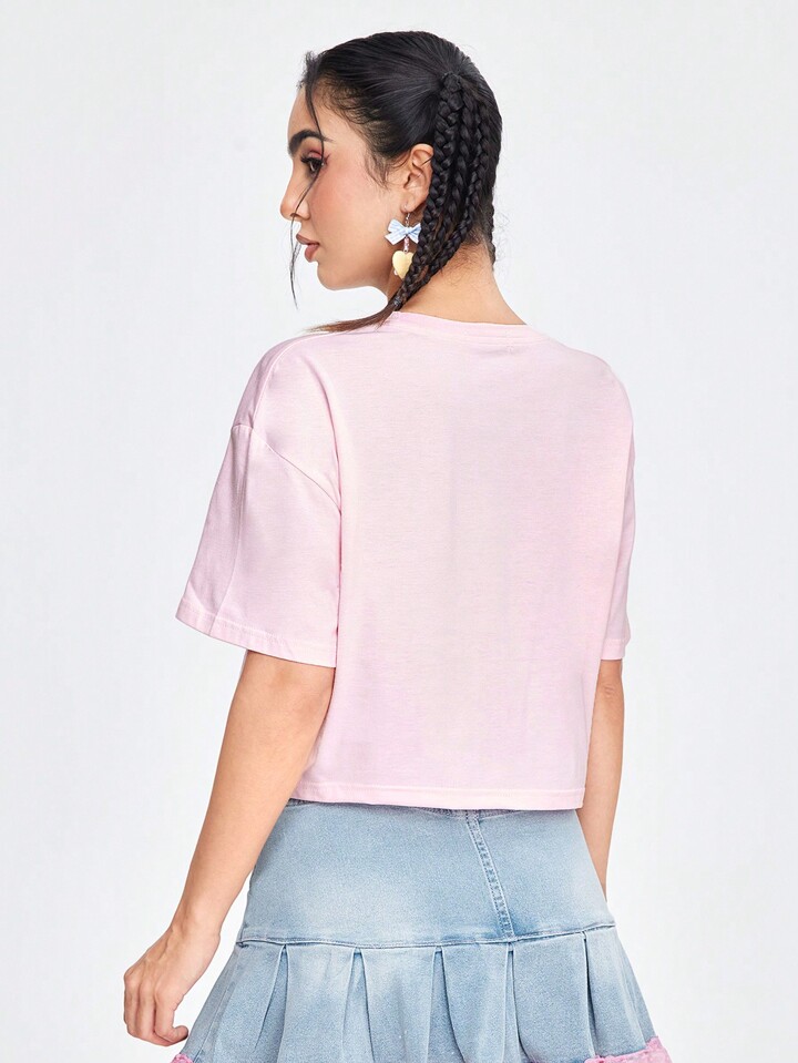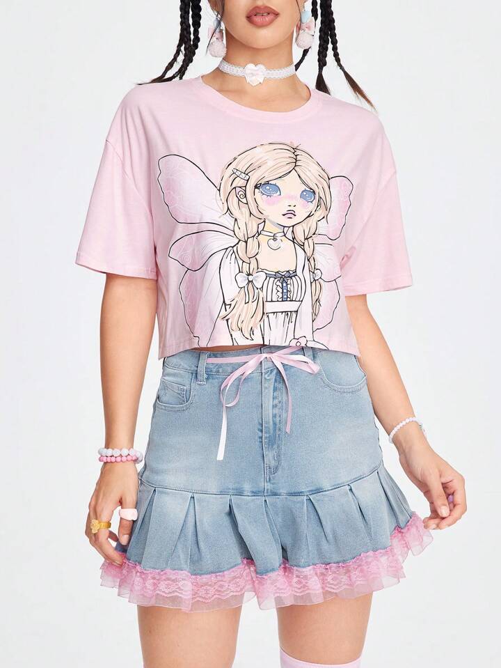 IFAIRY2 تي شيرت نسائي برسمة فتاة عصرية و أكمام قصيرة وياقة دائرية