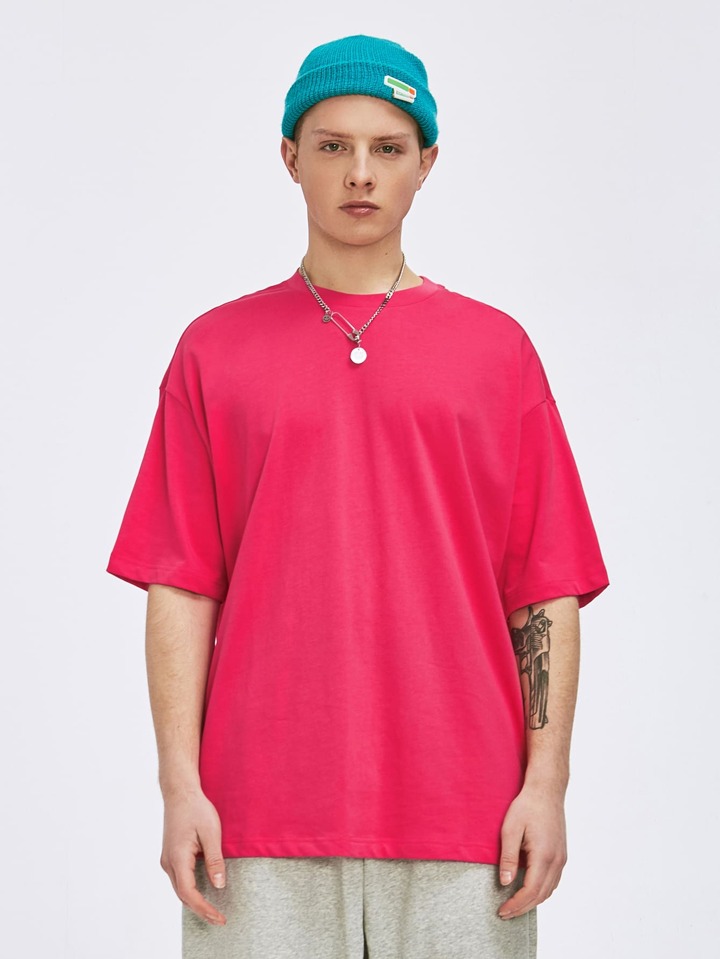 INFLATION تي شيرت بلون موحد منخفض الاكتاف للرجال