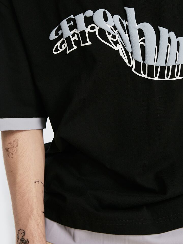 INFLATION تي شيرت 2 في 1 بجرافيك عبارة للرجال