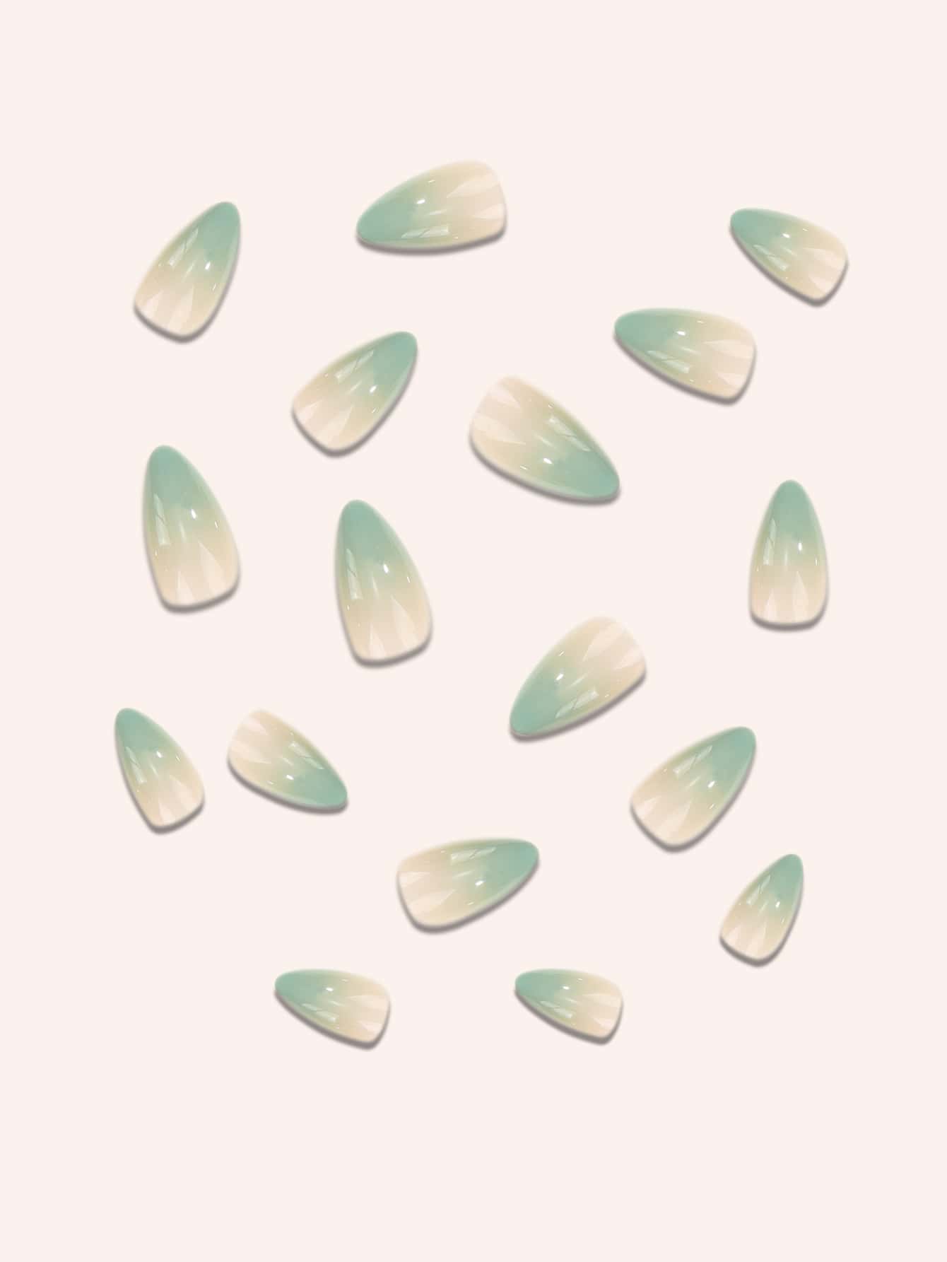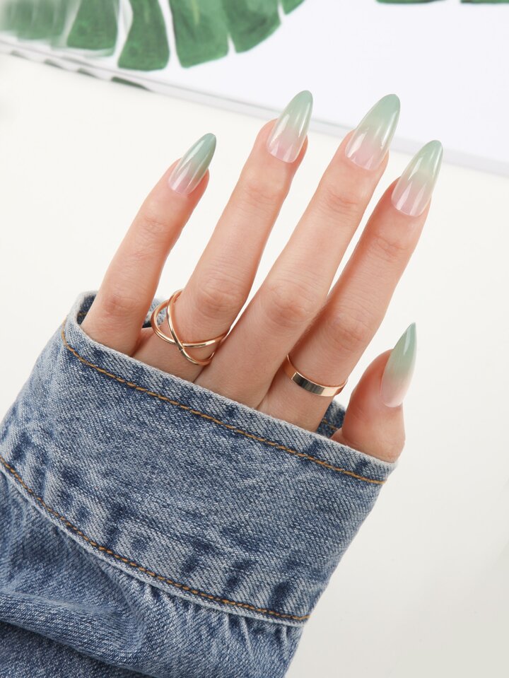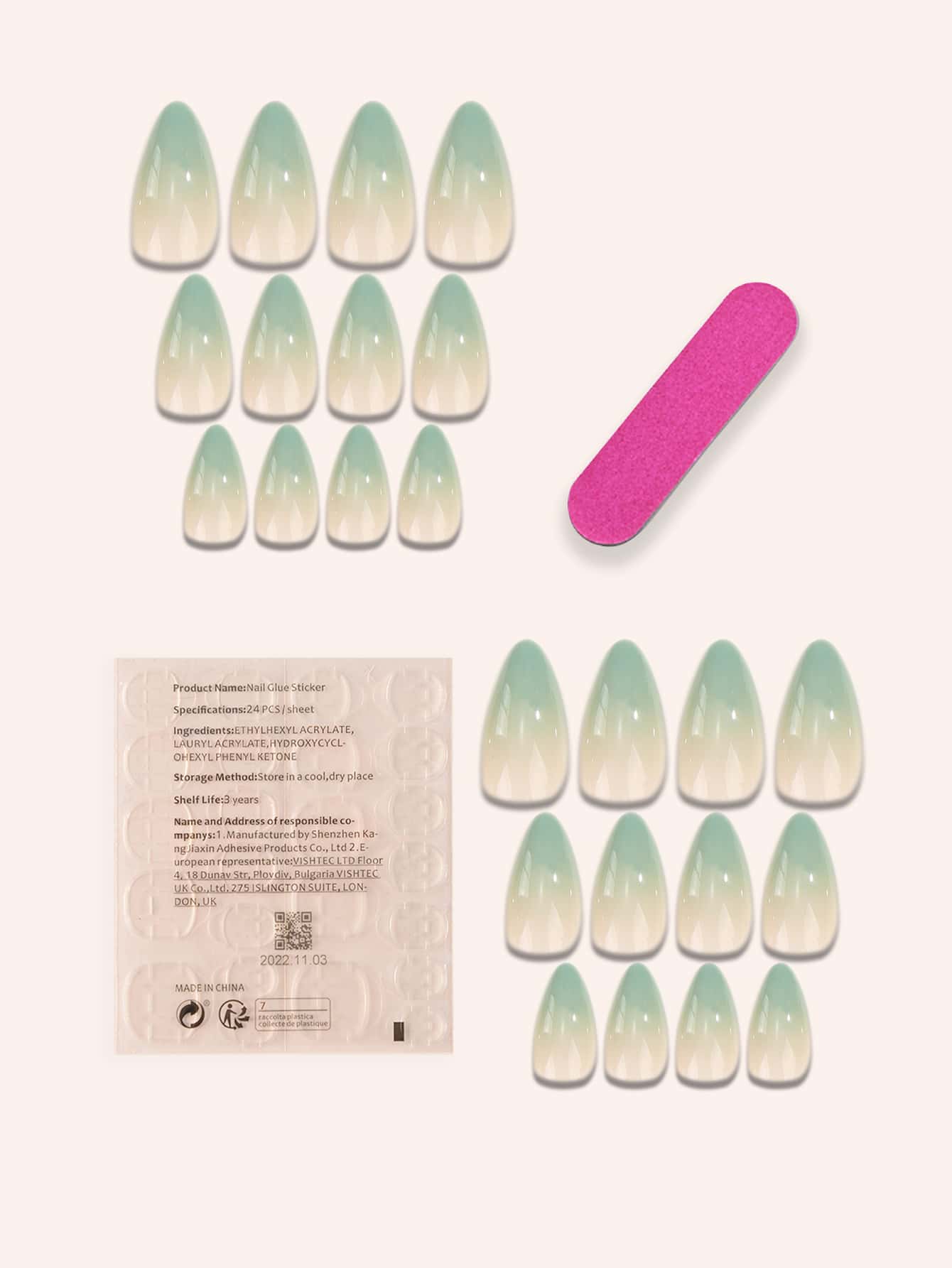 في الحال يرقي مظهرك مع 24 قطعة طويل لوز أخضر ألوان متدرجة لامع أظافر اصطناعية ملف الأظافر 1قطعة & ورقة واحدة شريط