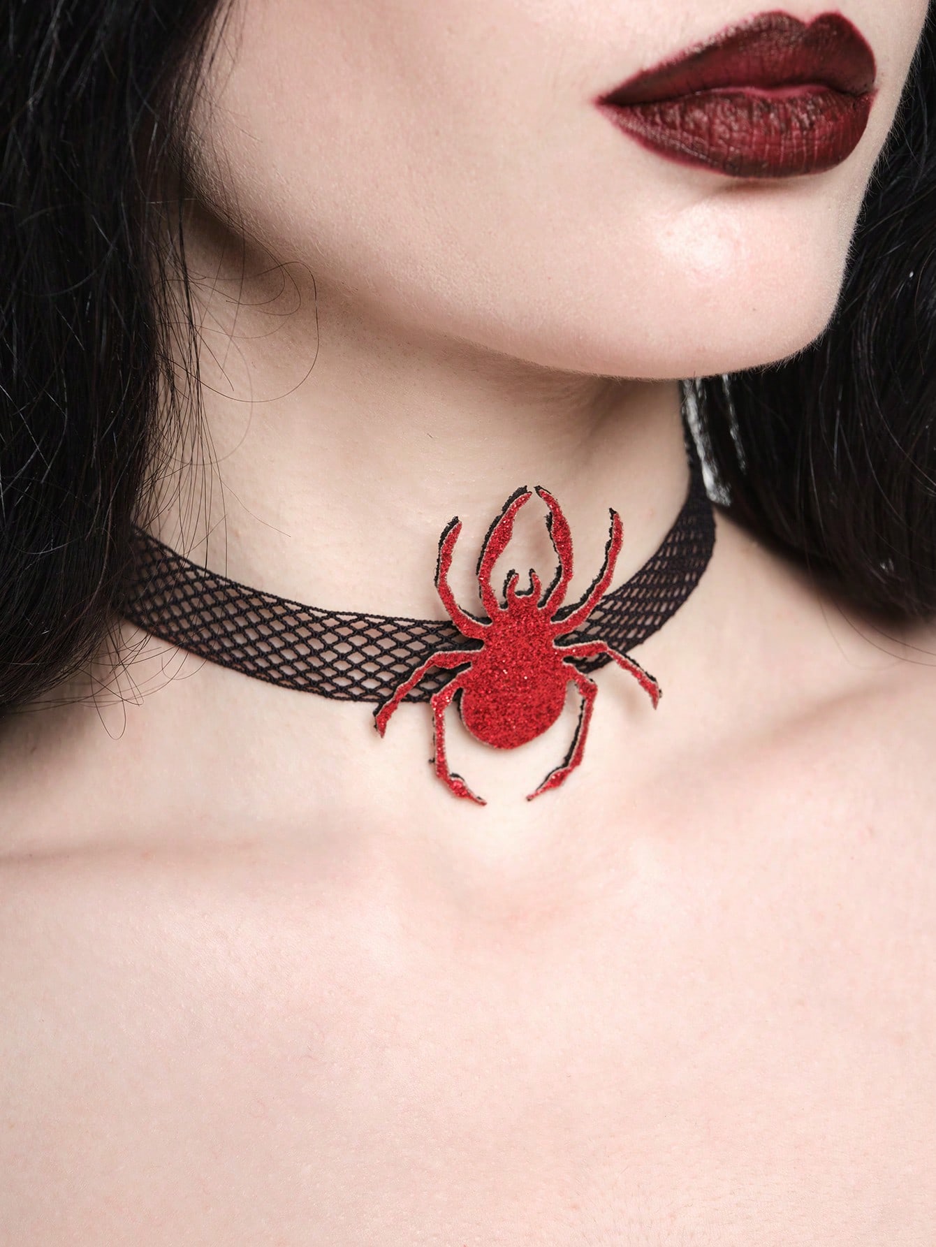 J-Fashion قطعة واحدة من الطوق الأسود الجذاب المفرغ بتصميم عنكبوت أحمر وملمع فريد، إكسسوار عنق للسيدات