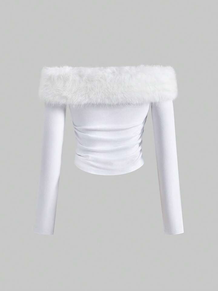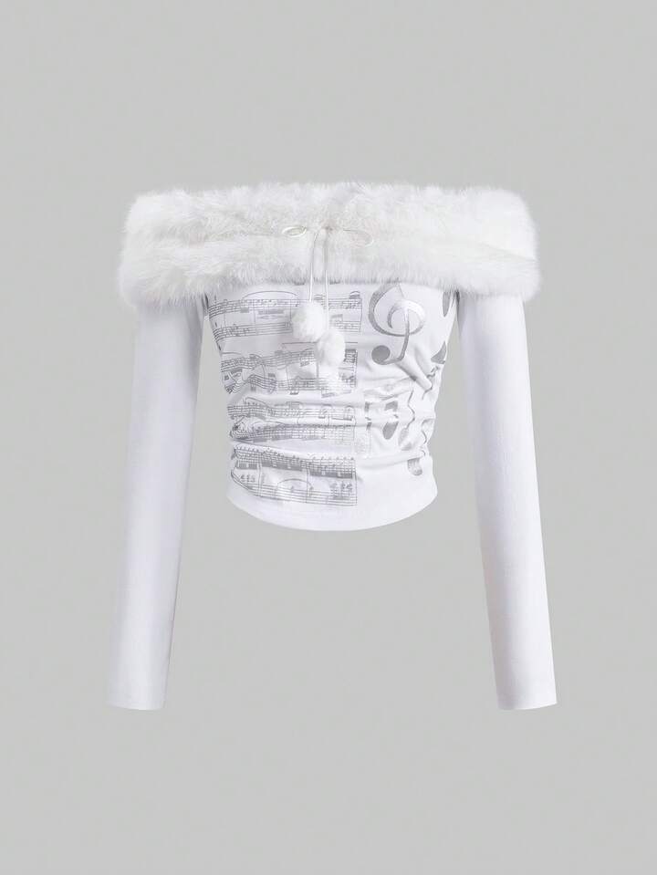 J-Fashion ملابس علوية طويلة الأكمام قابلة للإزالة من الكتف مع ربطة عنق وزخارف فرائية، مناسبة لملابس الشتاء