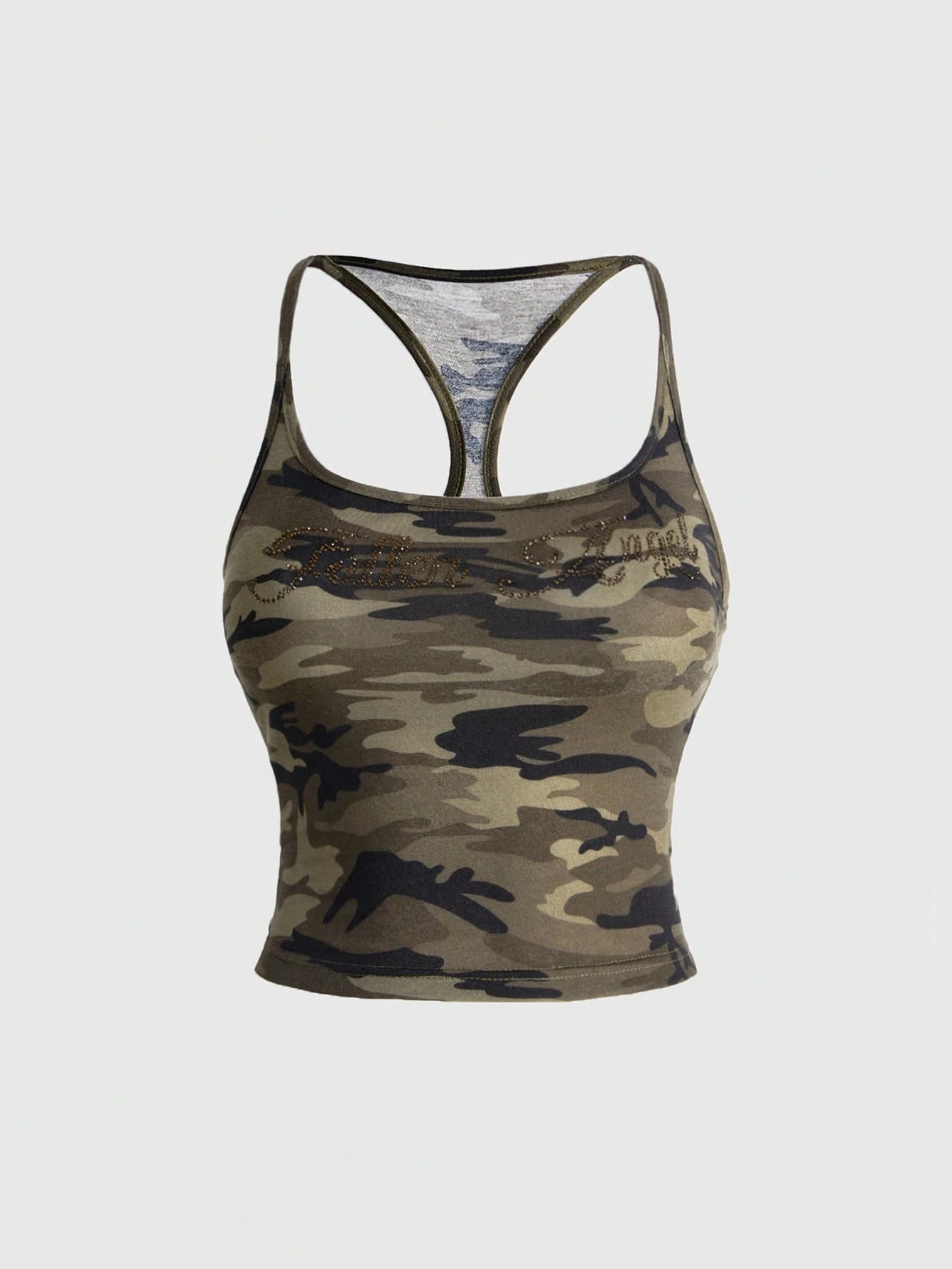 J-Fashion خزان ملابس علوية مقصوص مرصع بالراين بطبعة كاموفلاج عتيق وجذاب للنساء
