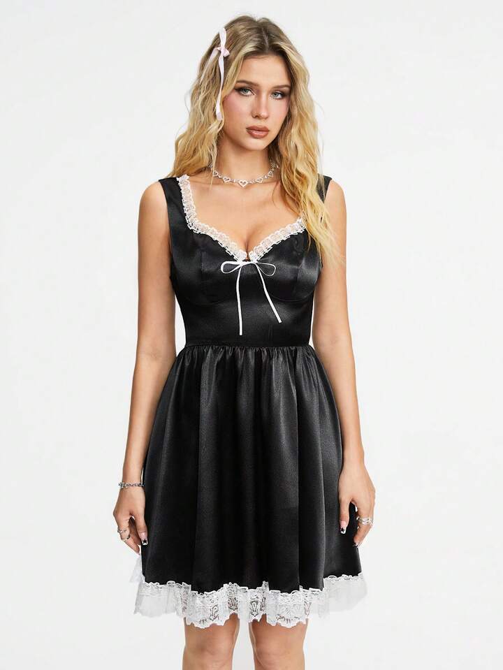 J-Fashion فستان نسائي بتصميم كلاسيكي بطراز المحاكم القديمة مع ربطات وأحزمة للكتف من الدانتيل