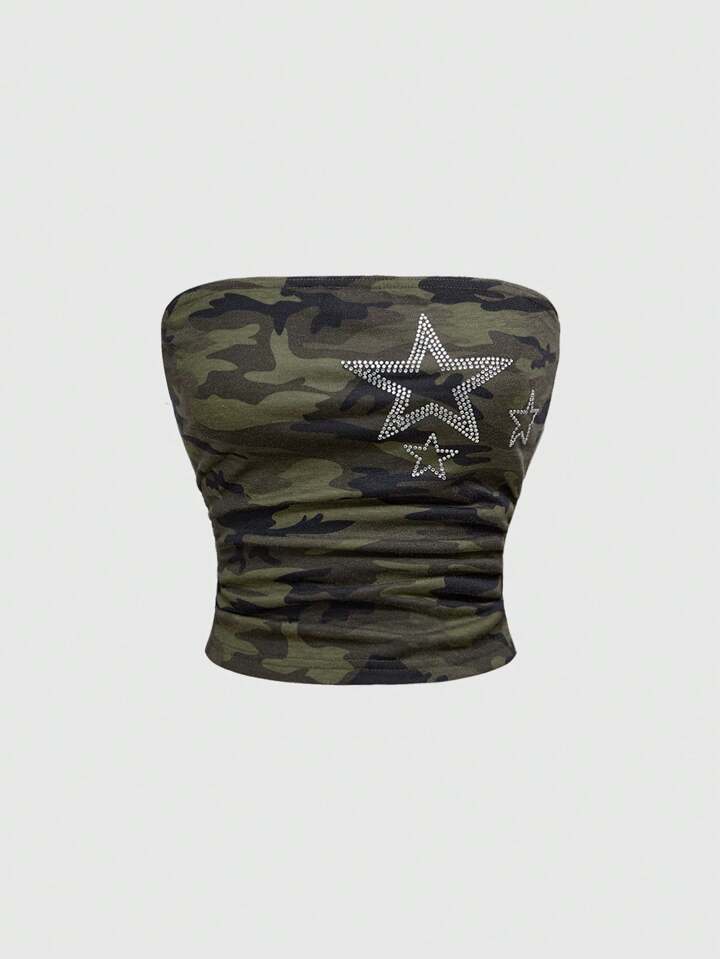 J-Fashion مجموعة من قطعتين للنساء، ملابس علوية قصيرة بطبعة كاموفلاج وبنطال قصير