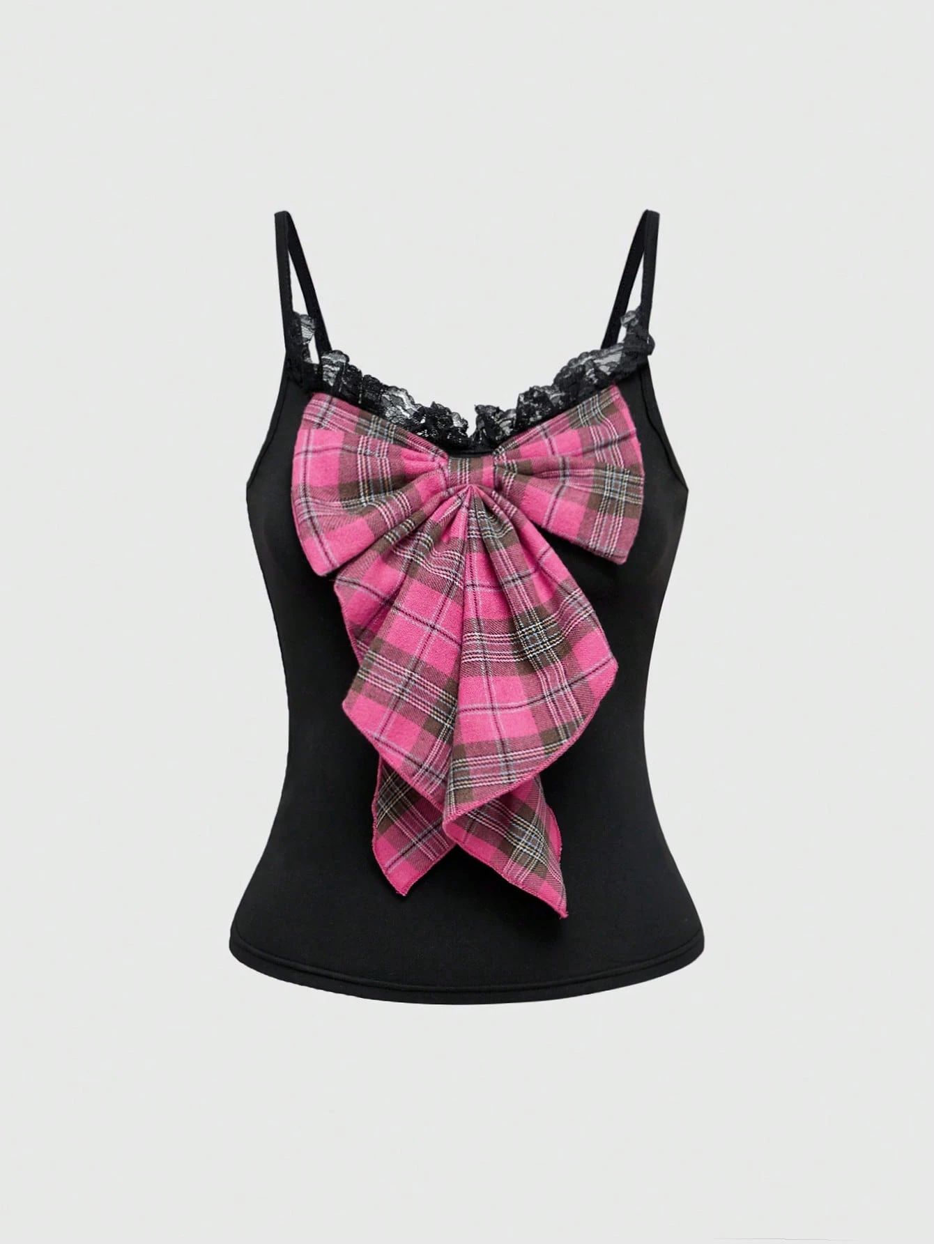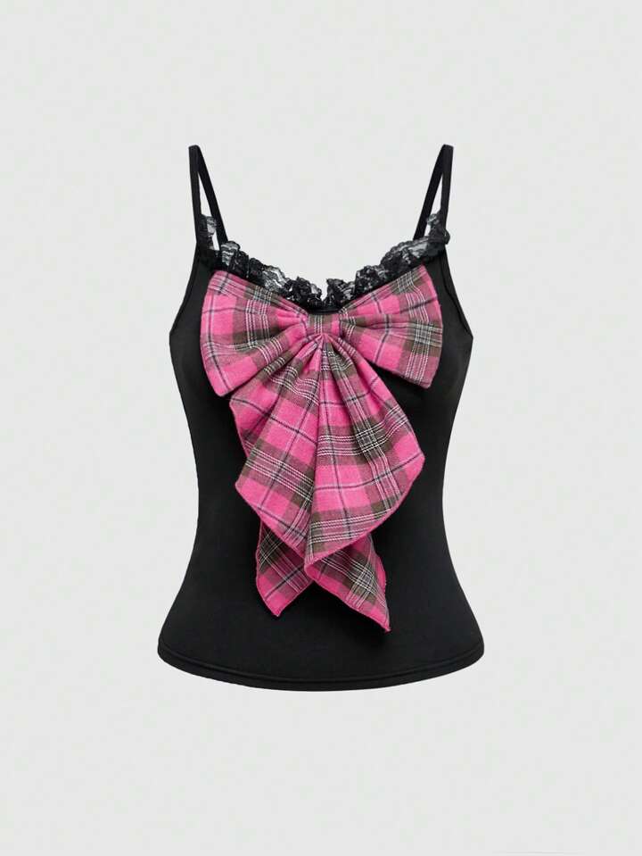 J-Fashion توب كامي مزين بفيونكة مربعات، أنيق للفتيات في الصيف