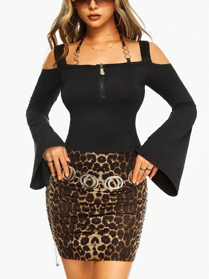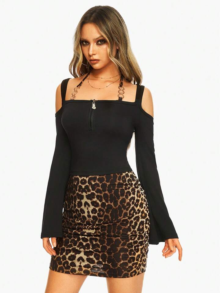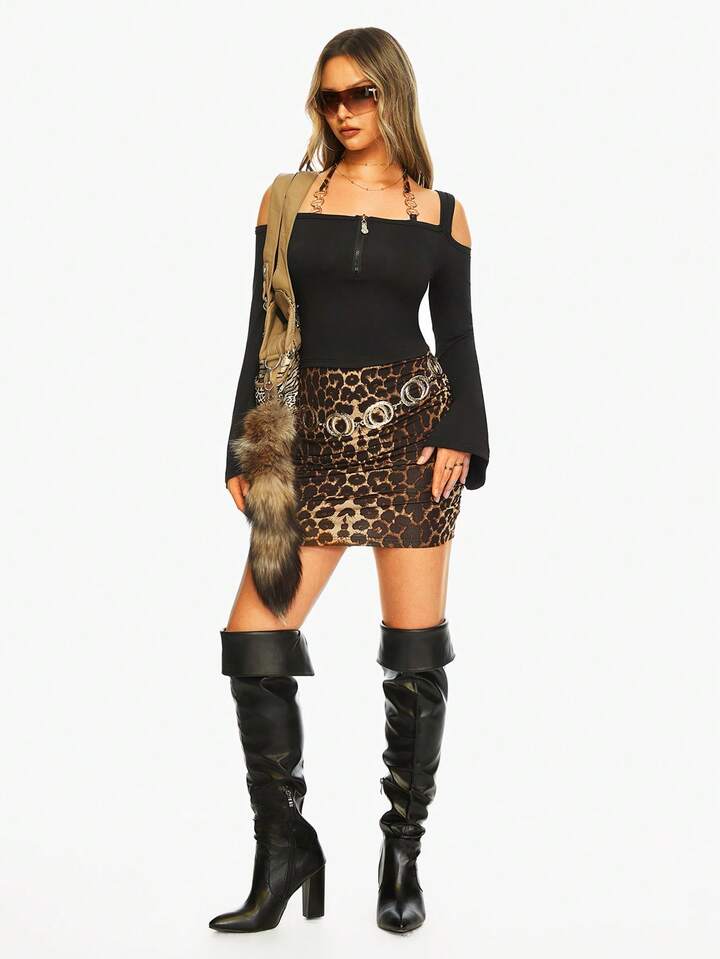 J-Fashion فستان قصير من قطعتين بطبعة نمر للنساء