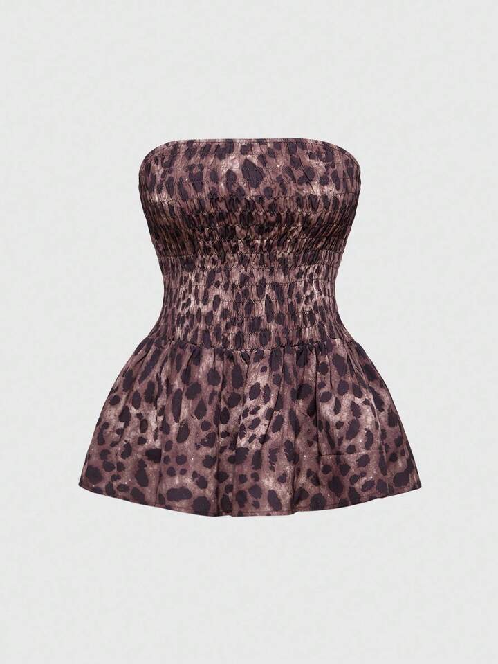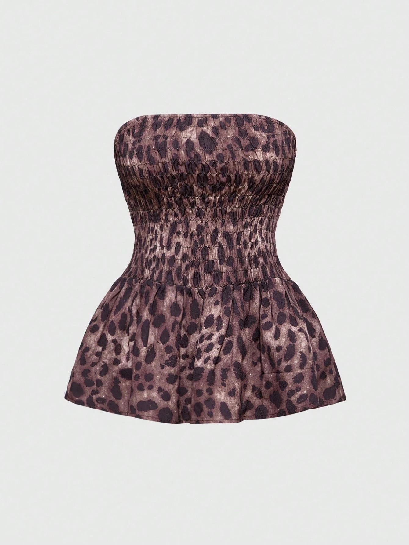 J-Fashion ملابس علوية نسائية بطبعة نمر وكشكشة على الحافة