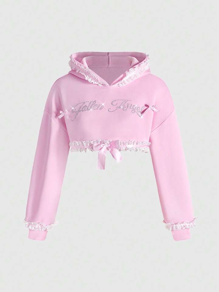 J-Fashion بلوزة قصيرة نسائية بأكمام طويلة وياقة مزينة بالرينستون والفيونكة