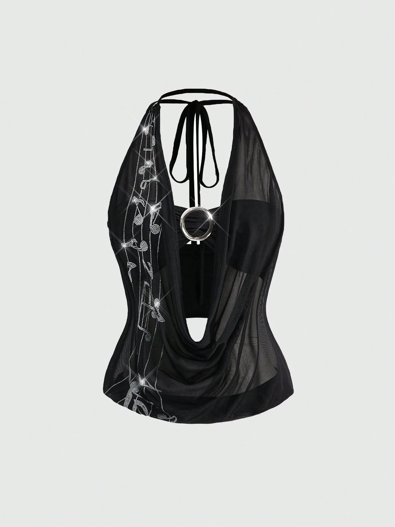 J-Fashion ملابس علوية نسائية بياقة حلقية مرصعة بالراين بدون أكمام