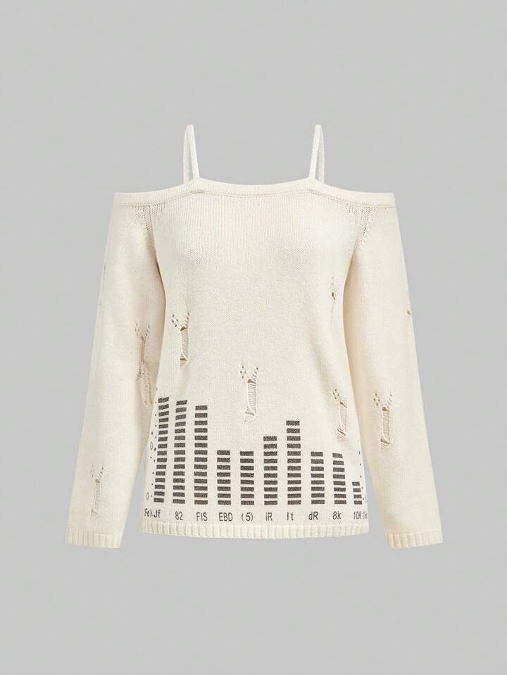 J-Fashion كنزة صوفية نسائية مثيرة بأكتاف باردة وحمالات رفيعة مطبوعة بطباعة البيانو المتهالكة