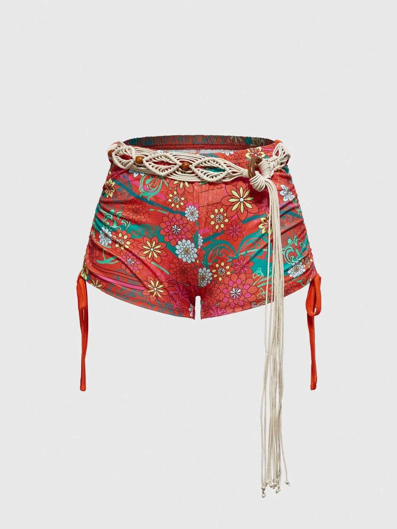 J-Fashion شورتات قصيرة ريترو فينتاج مزهرية بطراز Y2K للعطلات
