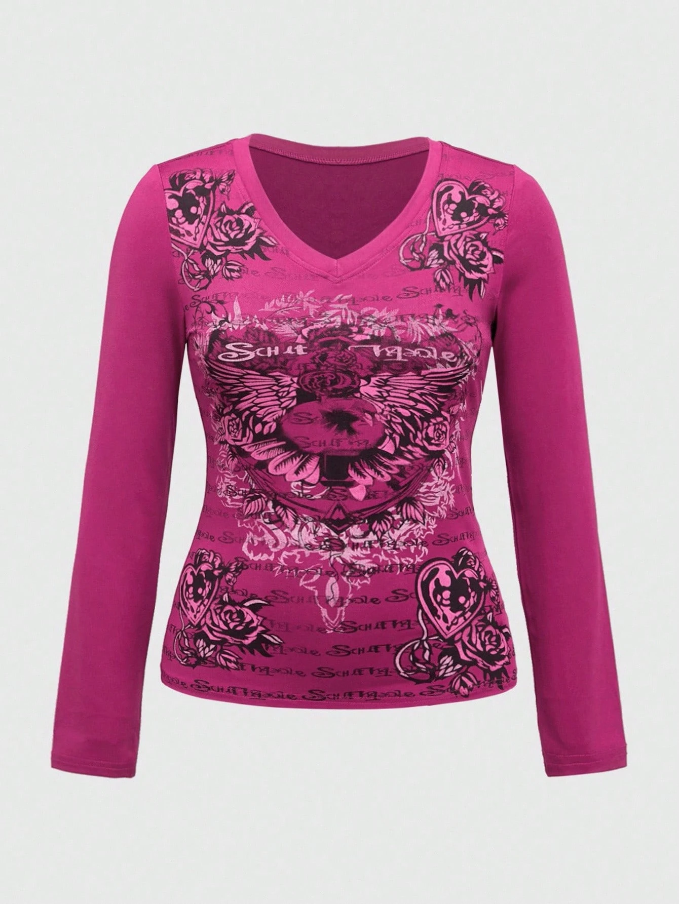 J-Fashion قميص تي شيرت مطبوع بتصميم قلب وأجنحة بطراز فينتاج جرانج Y2K