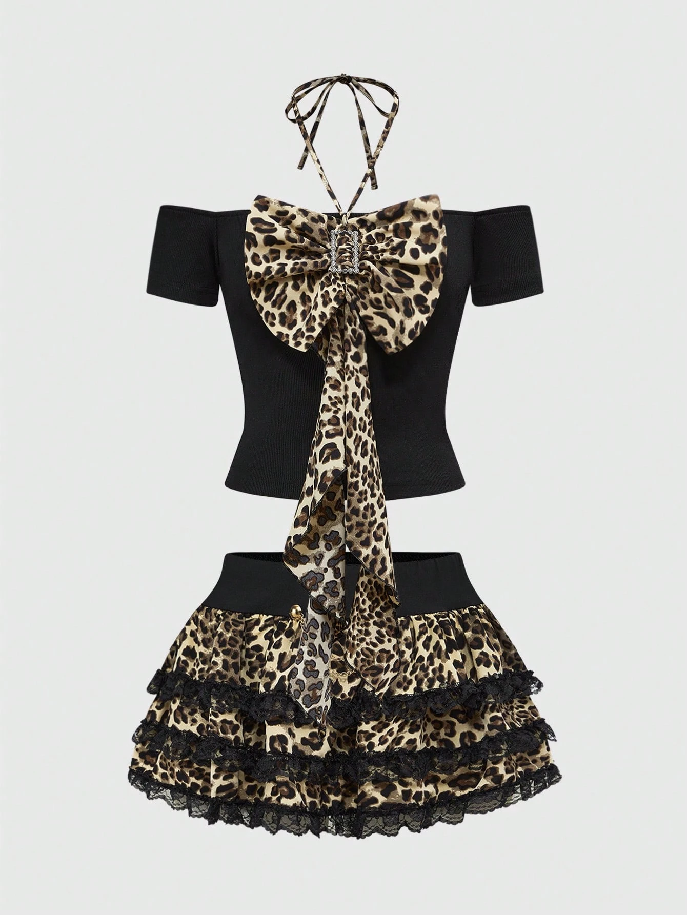 J-Fashion طقم من قطعتين ل- المرأة، بلوزة حريرية كبيرة الحجم مزينة بالدانتيل بطراز هاراجوكو الياباني الأنيق وتنورة كيك
