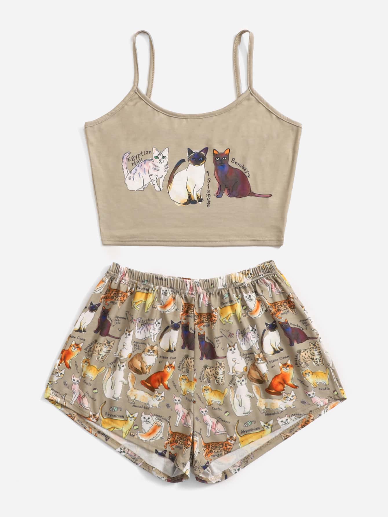 JOLLY by Jiajia Fairycore طقم بيجاما بشعار القطة الحرفي، مدرسي