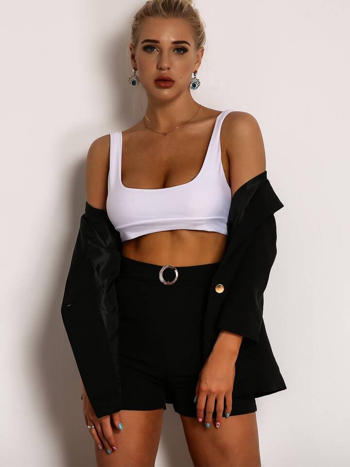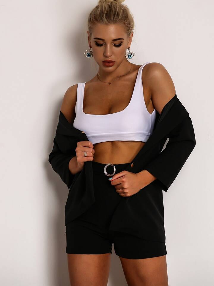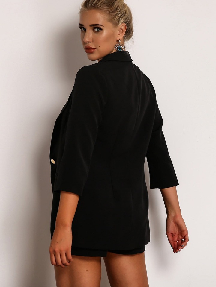 Joyfunear طقم سروال قصير بتفاصيل حلقة مع بليزر بصف واحد من الازرار