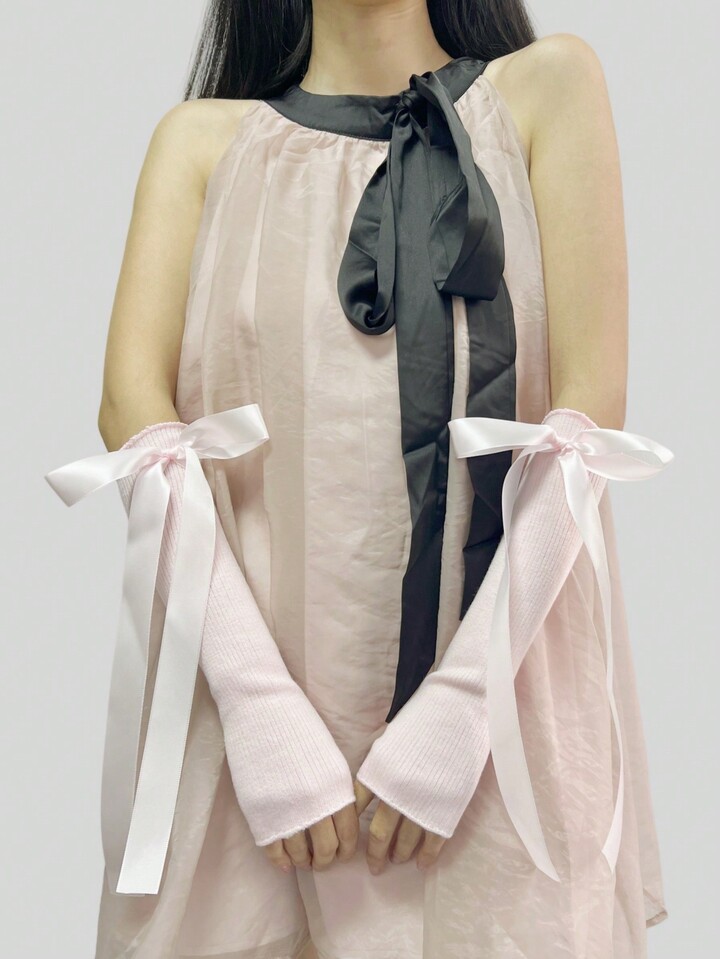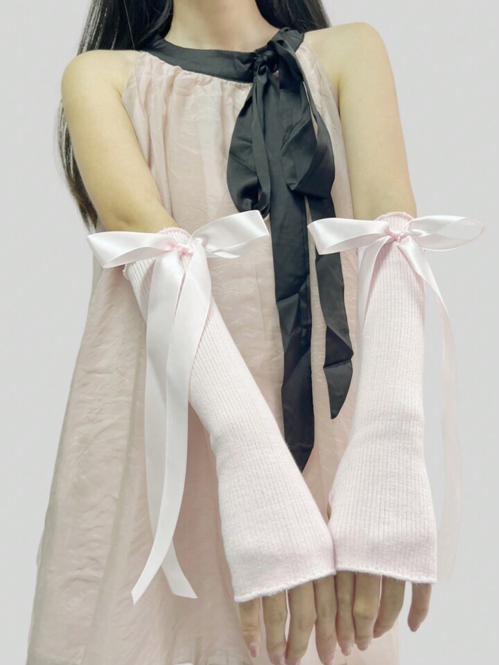 Kawaii زوج من قفازات بلا أصابع وردي اللون بطراز الباليه مزين بفيونكة على الطراز الثوي، زوج آخر من أكمام الذراعين/دفياء الترينج على طراز عام 2000 بنمط فراشات ذوي شرائط معلقة باللونين الأبيض والأسود، مناسبة للمواعدة والحفلات ومهرجانات الموسيقى والحفلات الزفاف