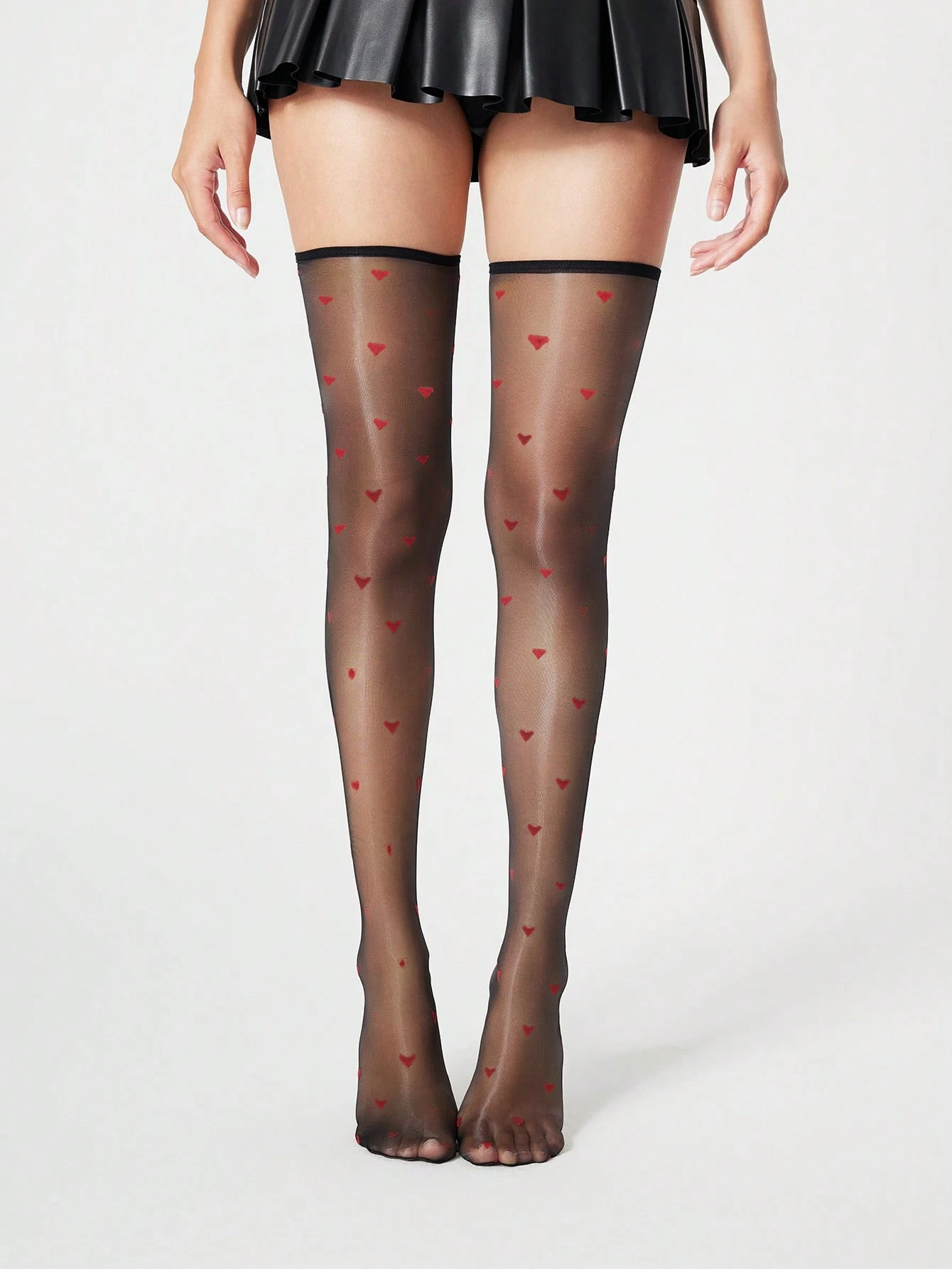 Kawaii زوج جوارب فوق الركبة بشكل قلب لامع هولوغرامي للنساء